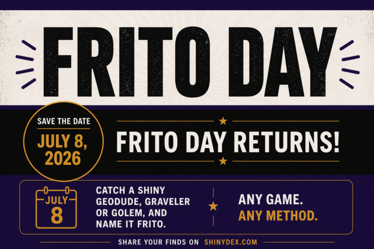 This year, we celebrate Frito Day as a community, setting out to find as many shiny Geodude as possible. Now that you know the significance of Frito, I ask that on July 8 you join me in catching at least one shiny Geodude, Graveler, or Golem and naming it Frito.