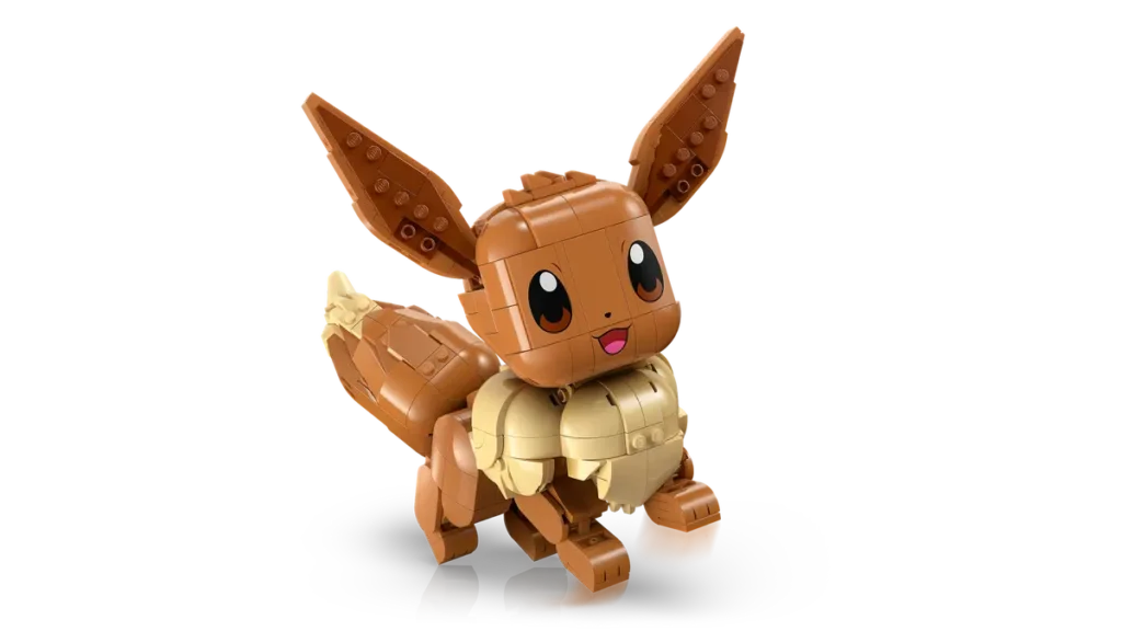 The first Pokémon LEGO set revealed is Eevee (Set #72151). Priced at $59.99 USD, the Eevee set consists of 587 pieces and stands approximately 7.5 inches tall when completed. LEGO describes the model as highly poseable and expressive, making it an appealing display piece for Pokémon fans.